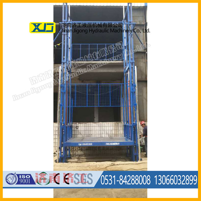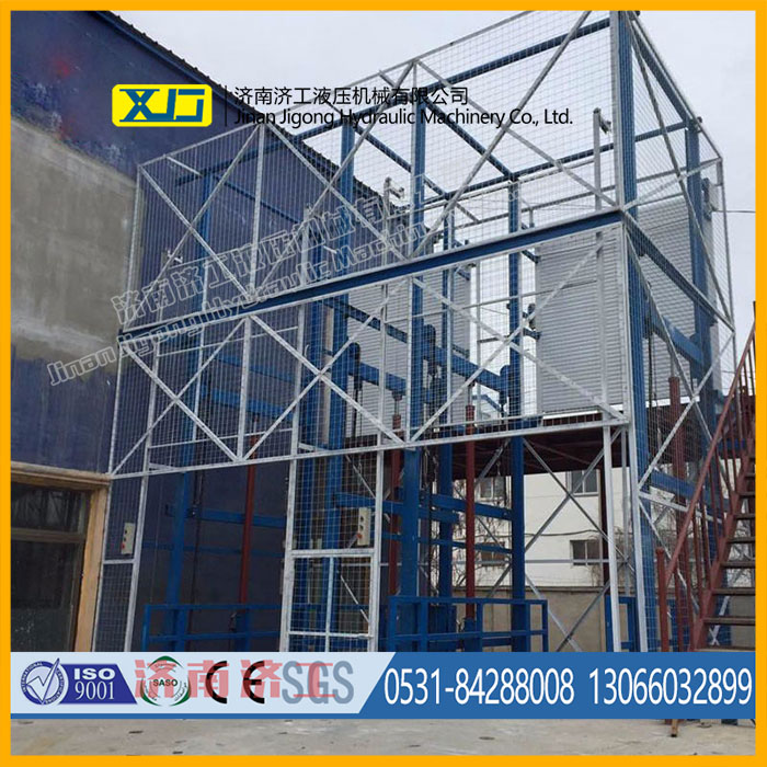 載重能力大,室外貨梯簡易電梯是靠液壓千斤頂?shù)脑韥眄斏I廂的,可采用多個油缸同時作用提升載重的轎廂。 噪聲低,液壓系統(tǒng)可遠離井道設(shè)置,隔離了噪聲源。