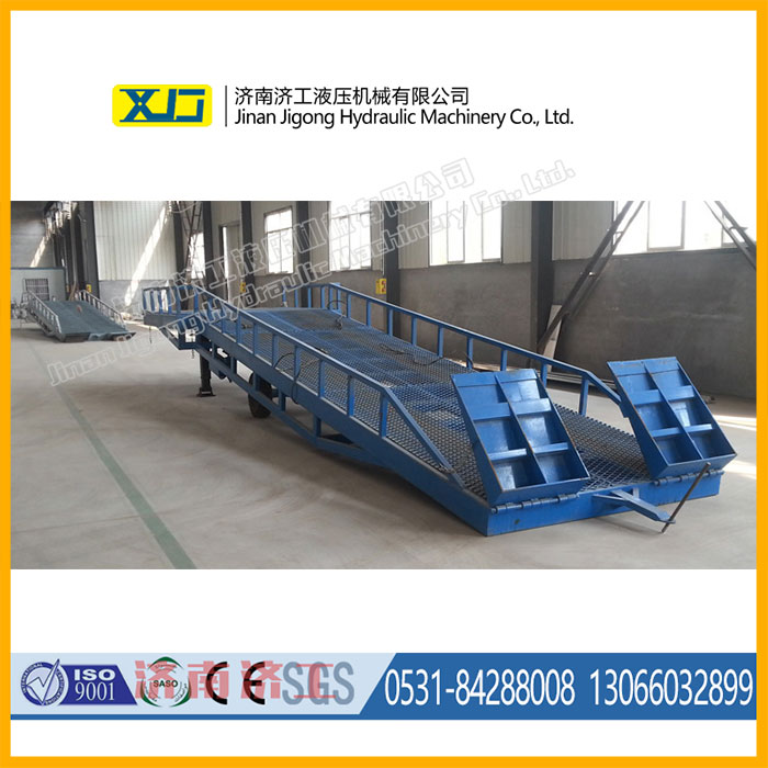 1. 用于貨物裝卸位置不固定場合的用貨物裝卸輔助設(shè)備,是實現(xiàn)貨物快速裝卸的專用物流機械,通過它使叉車等搬運車直接進入貨車、列車車廂裝卸貨物,在提高工效的同時又能充分保障作業(yè)安全。 2. 移動式登車橋的頭部設(shè)計有兩個互成90°的登車跳板,這種設(shè)計可以使用戶能夠合理地利用場地作業(yè),減少作業(yè)場地,具有很好的場地適應(yīng)性。 3. 采用前腿支撐方式,穩(wěn)定性好; 4. 高度調(diào)節(jié)范圍大,適合各種工況; 5. 坡度低,配有安全鏈條和標(biāo)示,安全性好; 6. 臺面均設(shè)計為網(wǎng)格狀鋼板,這種結(jié)構(gòu)能證具有很好的強度,又具有防滑功能,還能方便地清掃工作臺面,使它能經(jīng)常地保持清潔、美觀。 7. 無須外接電源,通過手搖泵作動力能輕松地在其整個調(diào)整范圍內(nèi)按50mm的倍數(shù)進行高度的調(diào)整。可以充分適應(yīng)各種不同高度的貨車。 8. 需要移動時,可利用叉車作牽引,配用隨機配備的快夾即可方便地進行移動,從而實現(xiàn)貨物的快速裝卸。 | |